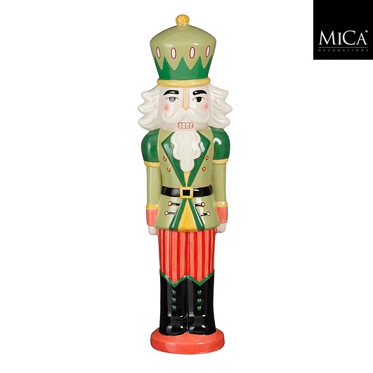 Deze prachtige groene Notenkraker is een tijdloos decoratiestuk dat direct de magie van de feestdagen oproept. Met zijn indrukwekkende hoogte van 51,5 cm en vervaardigd uit hoogwaardig keramiek, is dit figuur een echte blikvanger in elke kerstdecoratie.